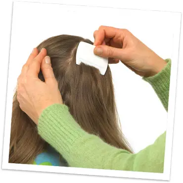 - Bei feinem Haar die Zähne des Lauskamms mit einer Gaze überziehen und dann durch die Haare fahren